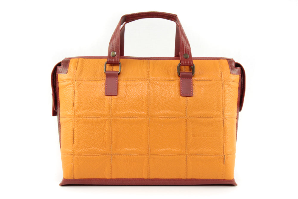 Mine’s a Metropolitan This is Elvis & Kresse’s Metropolitan Bag: hard-wearing vintage fire-hose and hand-woven rescued Burberry leather are combined beautifully for every sophisticated urban adventure. The contemporary design means you can comfortably carry a 14/15″ laptop and the bag has both an internal zip pocket and 2 easy-access poacher’s pockets. The Metropolitan can be carried in hand and also comes with a detachable strap that enables it to be worn comfortably on the shoulder. The Metropolitan Bag, part of our Fire & Hide Collection, is crafted through a transformation of leather fragments from the production of Burberry leather goods. Our craftsmen individually cut and hand weave, piece by piece, these otherwise lost scraps of leather into whole new hides. The Fire & Hide Collection is the sumptuous blend of our signature decommissioned fire-hose and rescued leather. The limited nature of our rescued materials means we can only ever create a few pieces in each variation. You can learn more about our leather partnership here. Every option includes handles and trim in Elvis & Kresse’s signature decommissioned fire-hose, which was previously deployed in active duty for up to 25 years, fighting fires and saving lives around the UK. The Fire & Hide Collection In 2005 we fell in love with London’s decommissioned fire-hose. Determined to save it from landfill we took this lifesaving material home, gave it a second chance, and vowed to donate 50% of the profits to the Fire Fighters Charity. But fire-hose was just the beginning. Every year, 800,000 tonnes of leather ends up on the cutting room floor. Our leather partners cherish their hides, but no matter how carefully they cut their patterns, there will always be small seemingly unusable offcuts. To rescue this leather we developed a unique modular approach. We hand weave these fragments into whole new hides then lovingly recraft them into susta